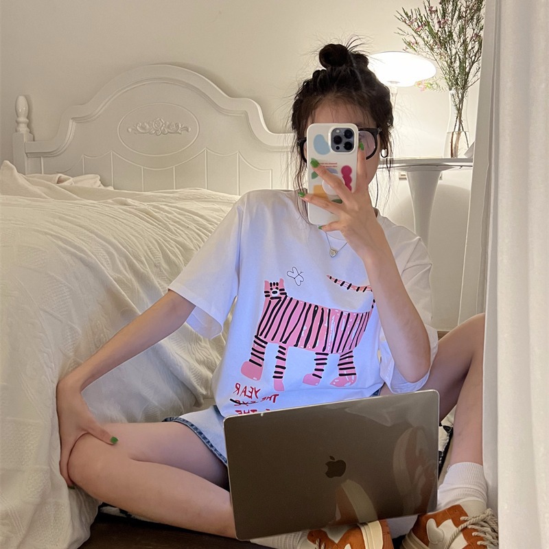 JHXC 纯色百搭基础T恤女短袖2022春夏新款潮宽松韩版圆领打底上衣热门设计联盟服务商