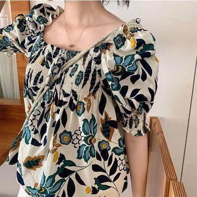短款衬衫女设计感小众方领碎花上衣小个子春夏季短袖娃娃衫泡泡袖热门设计联盟服务商