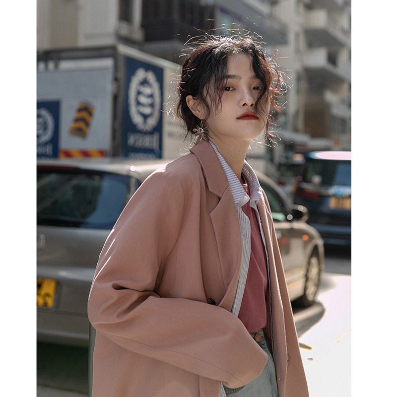 女春秋设计感休闲西服上衣2021新款粉色热门设计联盟服务商