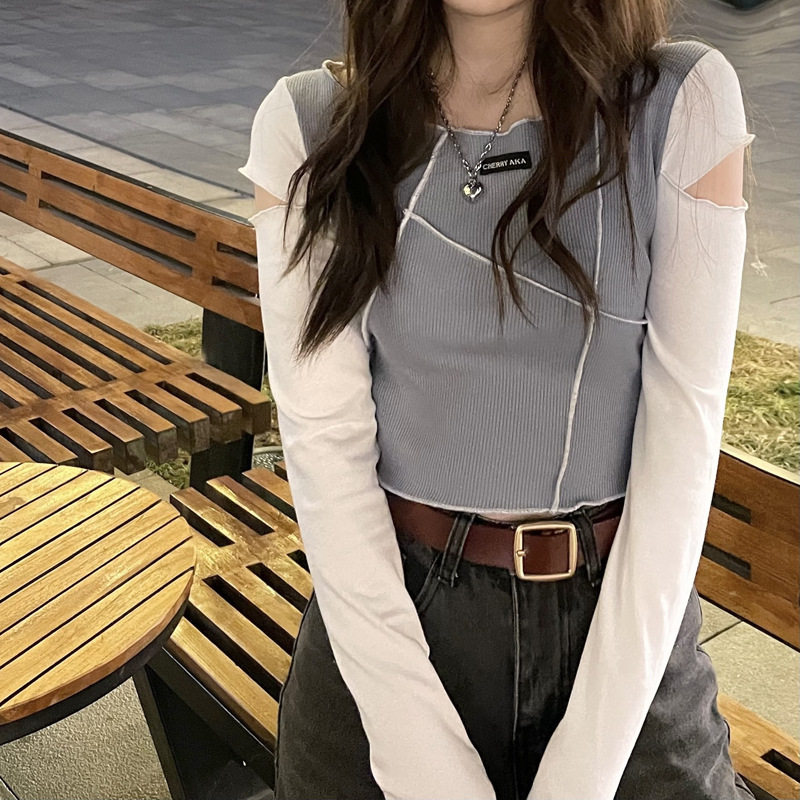早秋T恤女2021新款韩版修身辣妹设计感小心机短款镂空长袖上衣热门设计联盟服务商
