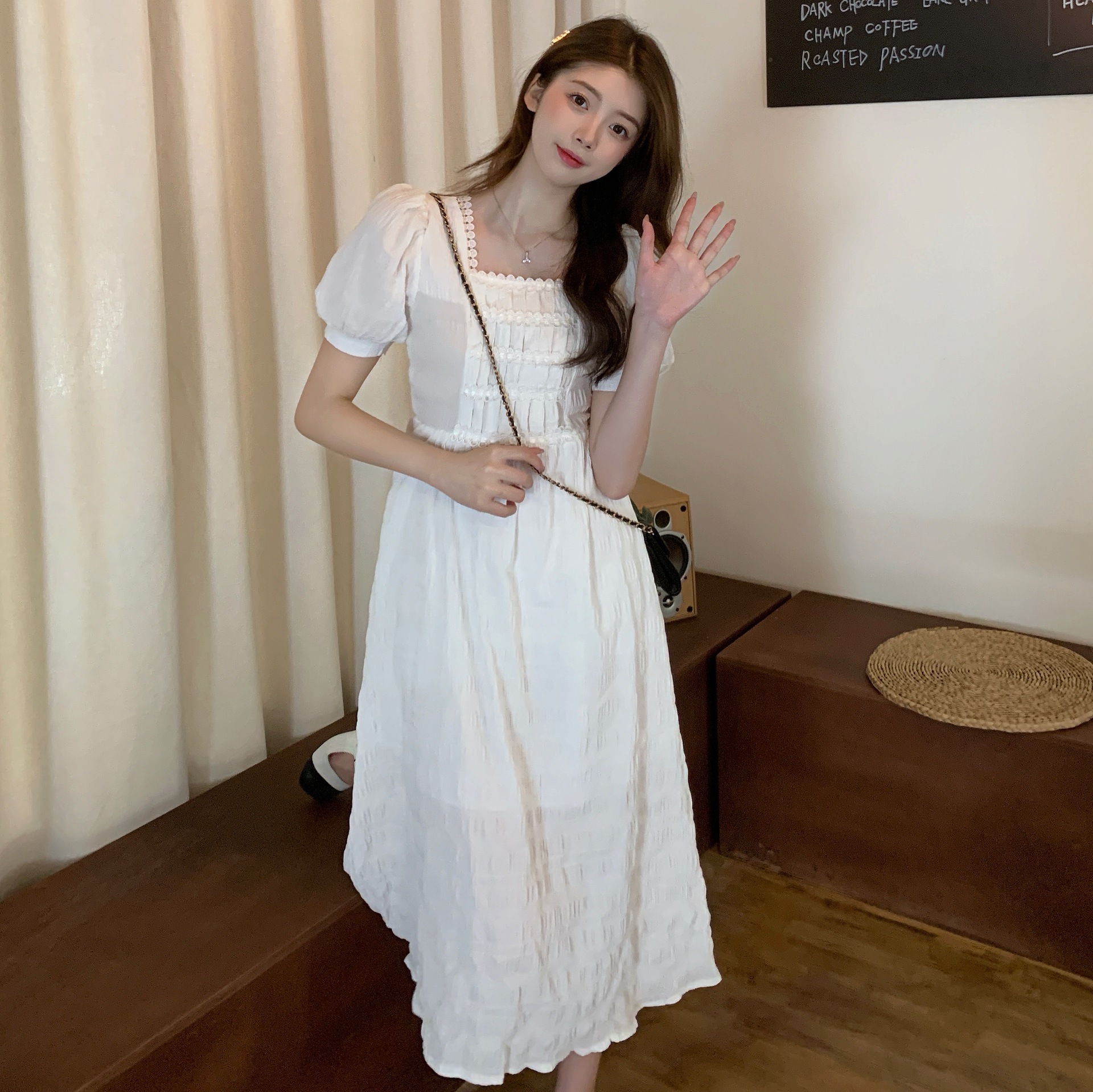 法式连衣裙女设计感小众泡泡袖长裙夏季新款初恋系小白裙显瘦裙子热门设计联盟服务商