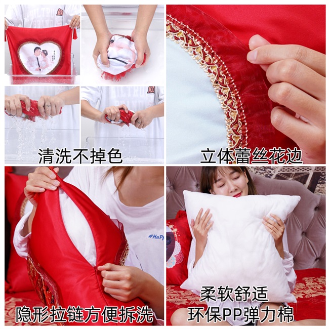 结婚抱枕一对定制照片diy订做被子两用红色爱心婚庆靠垫婚房枕头热门设计联盟服务商
