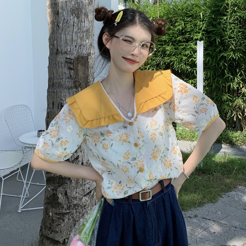 法式复古娃娃领衬衫女设计感小众2021新款甜美减龄宽松碎热门设计联盟服务商