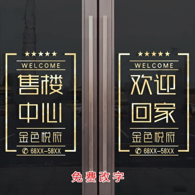 欢迎回家玻璃门贴纸售楼部房产租售交房布置小区物业中心装饰墙。热门设计联盟服务商