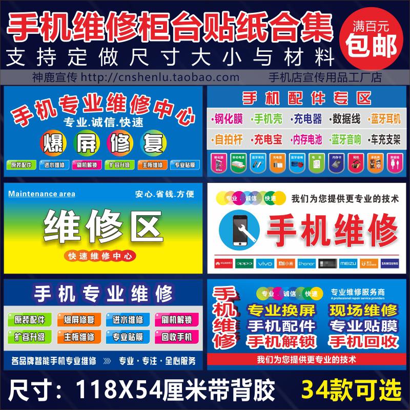手机配件维修宣传广告柜台贴纸贴画手机店柜台海报贴宣传用品。热门设计联盟服务商