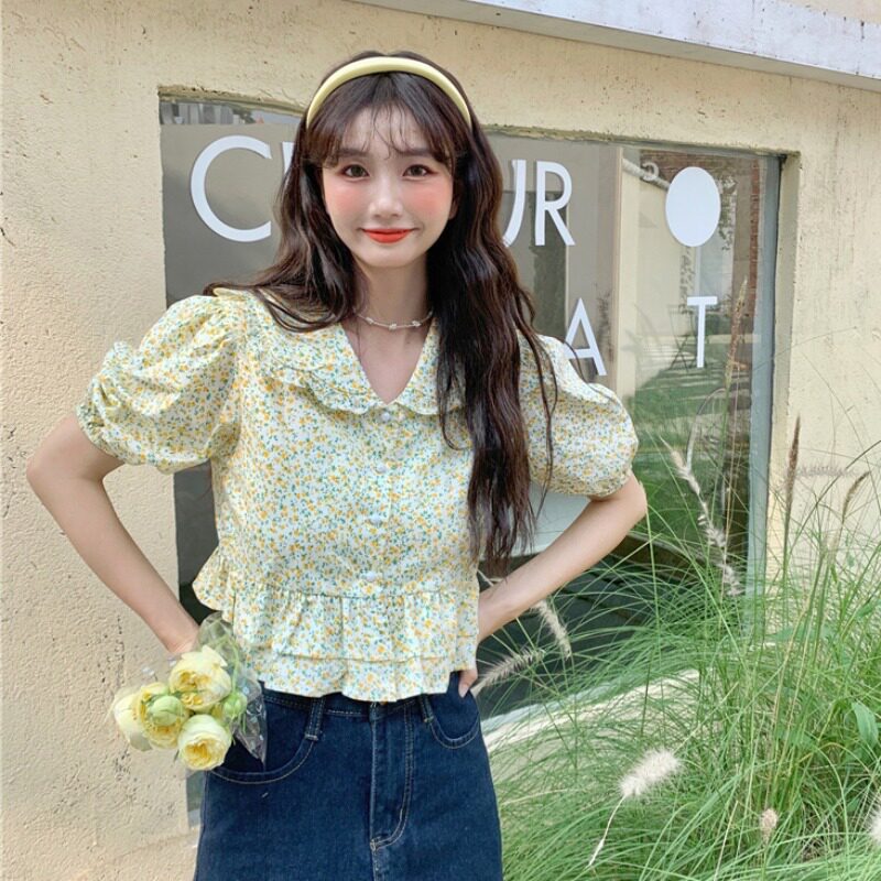 碎花短袖衬衫女设计感小众夏季2021新款法式甜美泡泡袖短热门设计联盟服务商