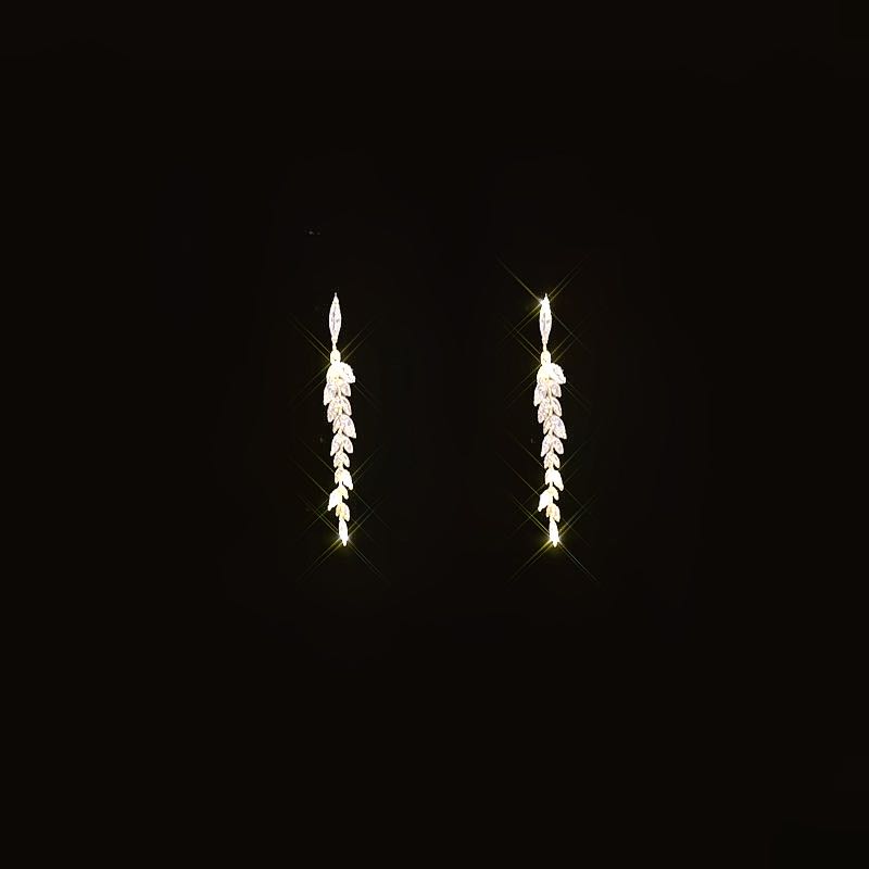 一生百饰 设计感微镶锆石14k镀金叶子耳钉少女心气质耳环925银针热门设计联盟服务商