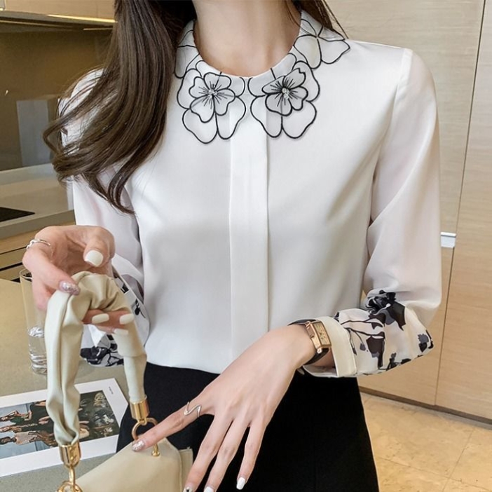 春秋花瓣娃娃领雪纺衫女长袖设计感小众衬衫气质职业衬衣洋气上衣热门设计联盟服务商