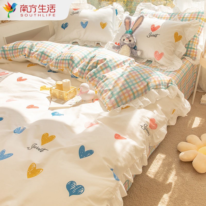 南方生活公主风水洗棉四件套床上用品女孩床单被套四季通用三件套热门设计联盟服务商