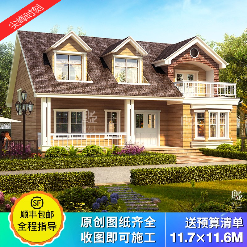 一层别墅设计图纸新农村自建房子全套美式施工效果图复式乡村小型热门设计联盟服务商