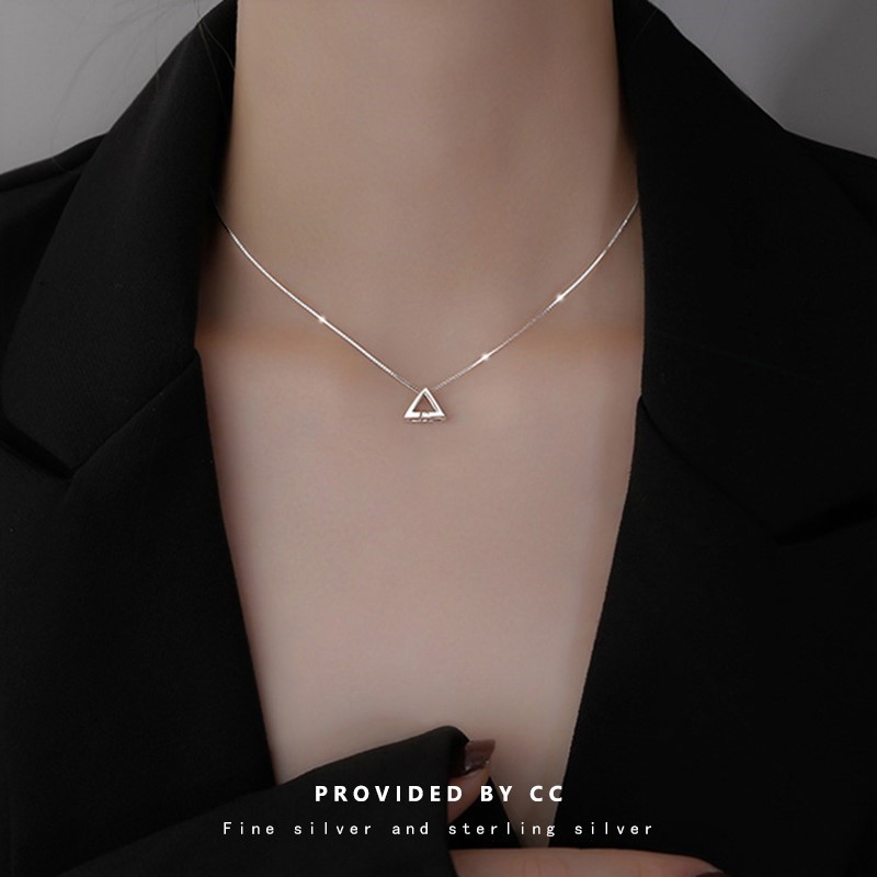 韩国新款气质简约三角形纯银项链女INS冷淡风小众设计感锁骨链潮热门设计联盟服务商
