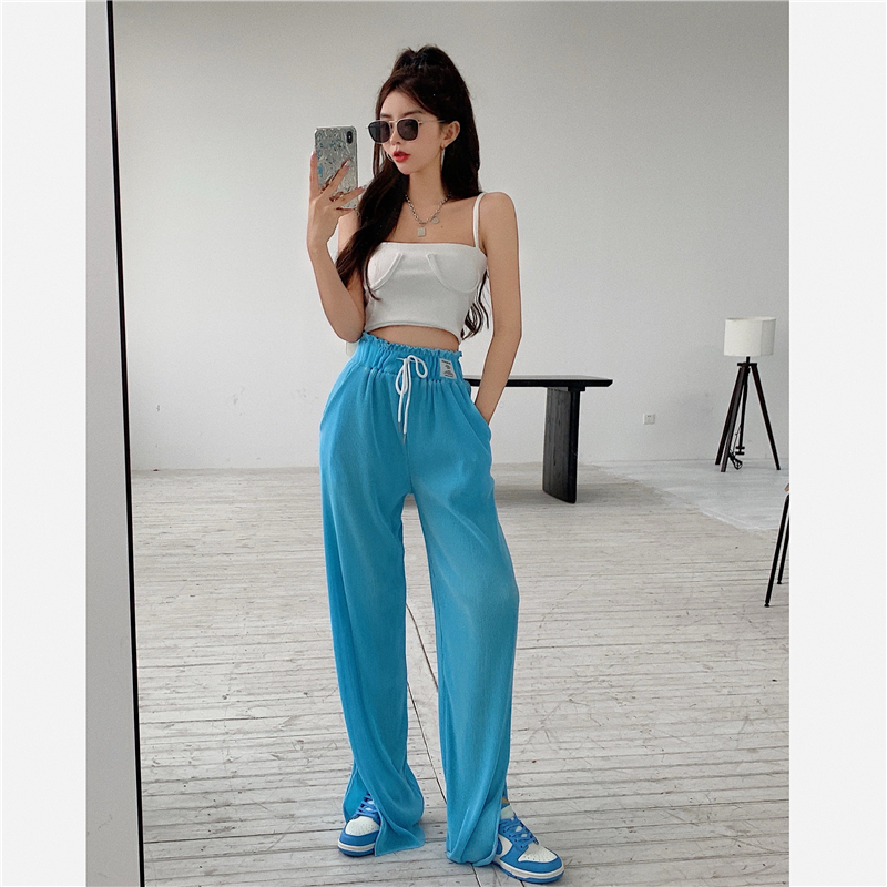 价~韩休闲设计感垂感重工压褶图标开叉阔腿拖地裤热门设计联盟服务商