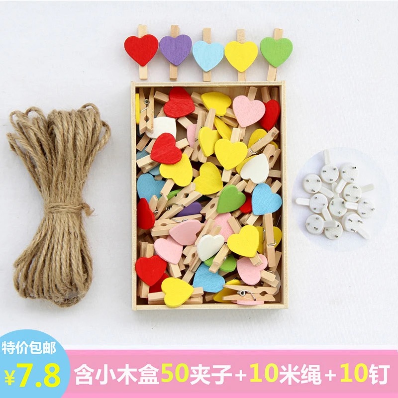 照片墙夹子麻绳彩色爱心木质木夹子照片墙装饰相片夹便签夹木夹子热门设计联盟服务商