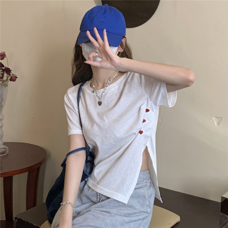 T恤女设计感不规则开叉爱心夏季韩版2021新款小个子白色短袖热门设计联盟服务商