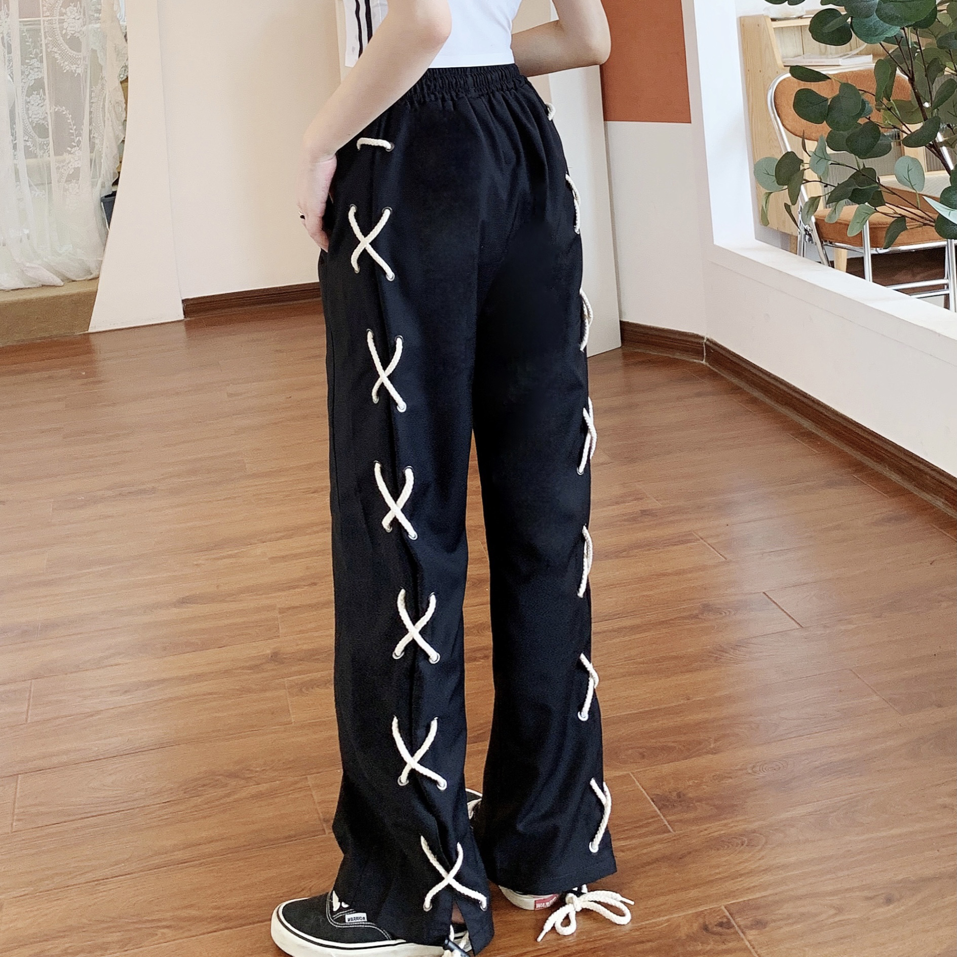 +2 系绳开叉阔腿裤设计感小众高腰直筒薄款休闲裤热门设计联盟服务商