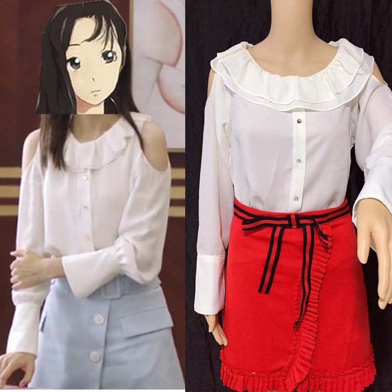 完美关系佟丽娅江达琳同款衬衫女娃娃领露肩宽宽松雪纺衫时尚上衣热门设计联盟服务商