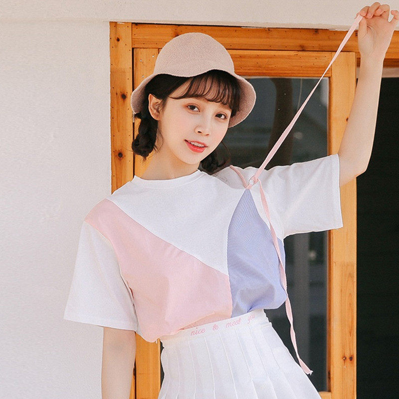 短袖夏季生学假两件新款韩版开学季ins潮设计感拼接t恤女2021上衣热门设计联盟服务商