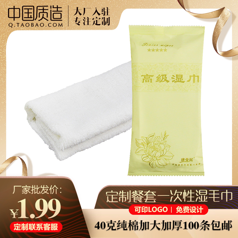 餐饮酒店宾馆一次性湿巾 30mm平 40g纯棉毛巾消毒湿毛巾定做热门设计联盟服务商