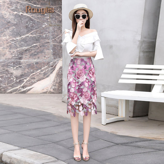 小众设计半身裙高腰蕾丝ar裙镂空女士显瘦包臀裙中裙粉色RT少女感热门设计联盟服务商