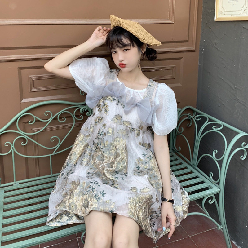 很仙的刺绣蓬蓬裙夏季2021新款复古高腰显瘦设计感背带连衣裙子女热门设计联盟服务商