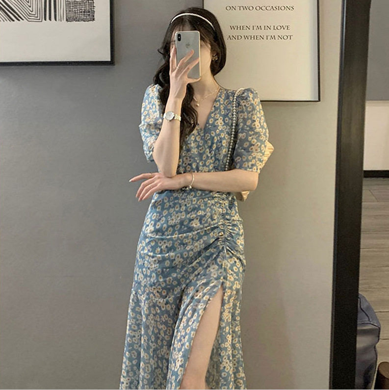 2021年新款收腰初恋长裙子碎花雪纺连衣裙设计感xiao众夏装女装热门设计联盟服务商