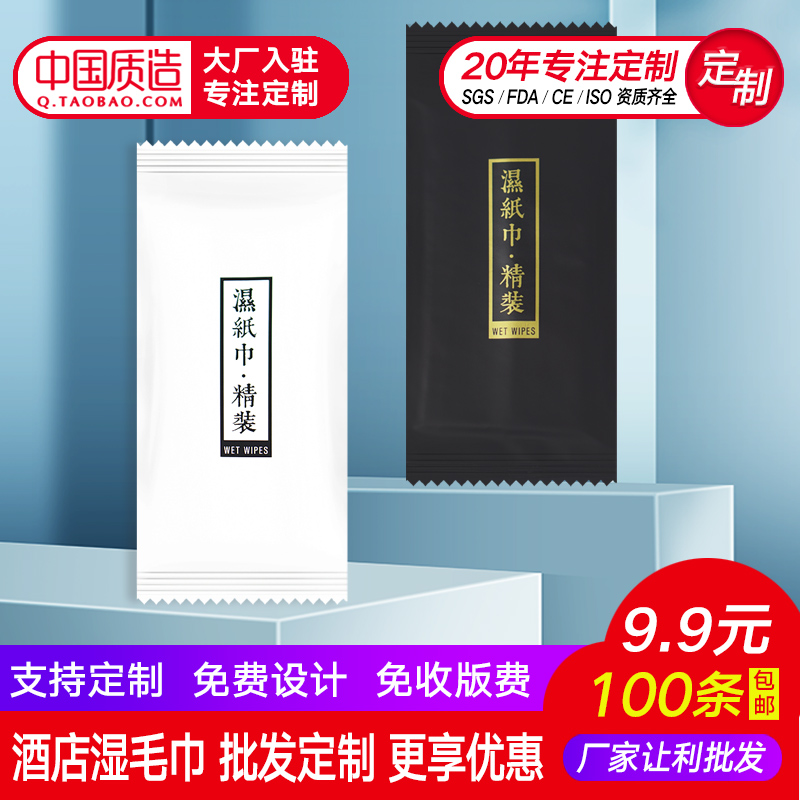 湿巾定制单片独立包装可印logo酒店网咖广告外卖一次性湿纸巾定做热门设计联盟服务商