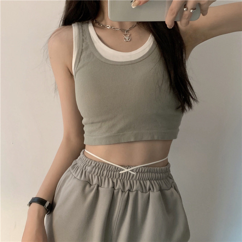 2021新款假两件背心吊带设计感辣妹内搭外穿潮短款打底上衣热门设计联盟服务商