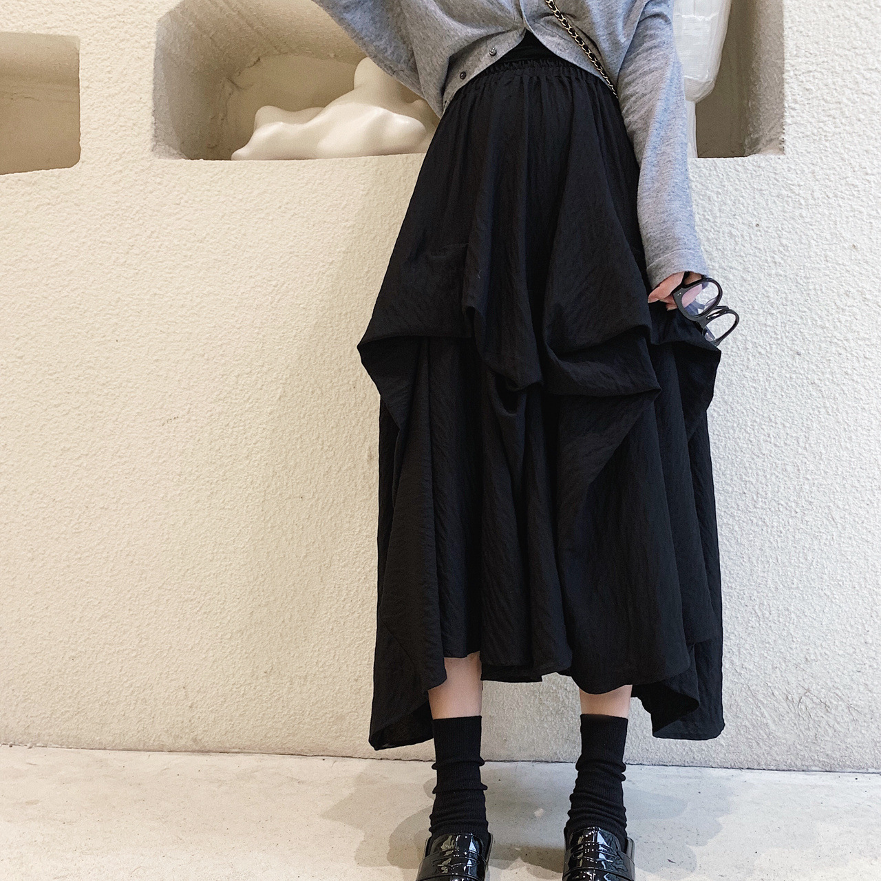 T4390 褶皱高腰设计A字半身裙女2021春季新款小黑裙山本裙子热门设计联盟服务商