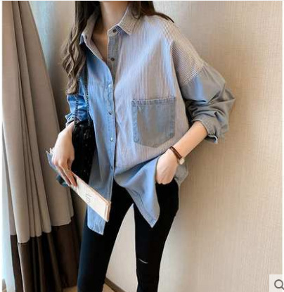 宽松牛仔秋季外套上衣韩版新款设计感长袖韩国衬衣衬衫女热门设计联盟服务商