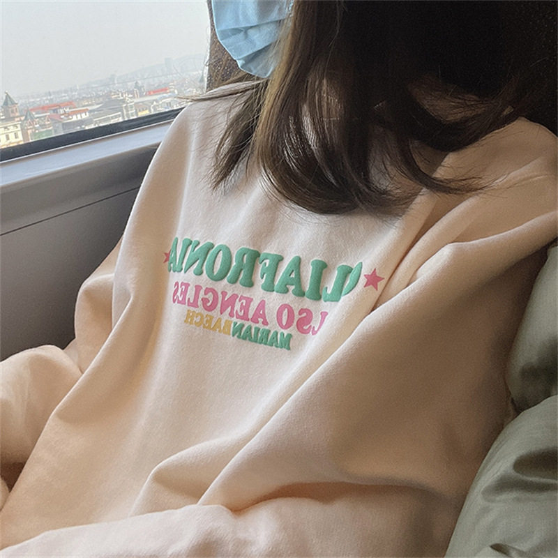 白色圆领卫衣女2021年新款宽松韩版长袖t恤夏春秋薄款设计感小众热门设计联盟服务商