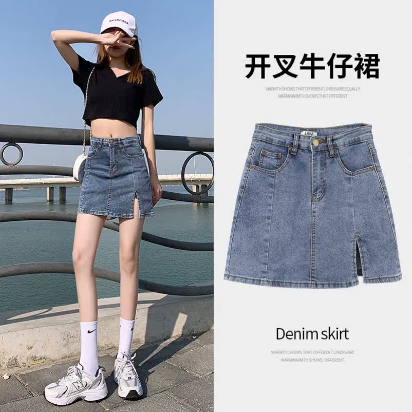 开叉牛仔半身裙女夏高腰a字显瘦设计感短裙2021新款辣妹包臀裙子热门设计联盟服务商