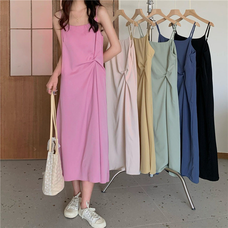 黑色吊带连衣裙女夏季新款法式复古设计感小众收腰显瘦中长款裙子热门设计联盟服务商