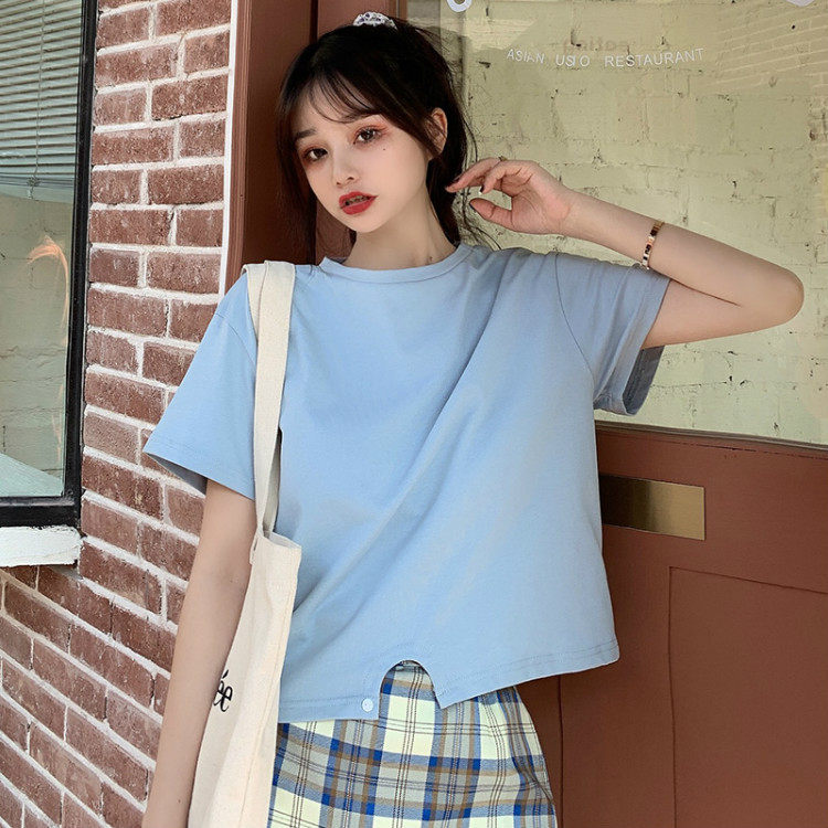 新款夏装学院风设计感纯色外搭ins短款短袖t恤女上衣热门设计联盟服务商