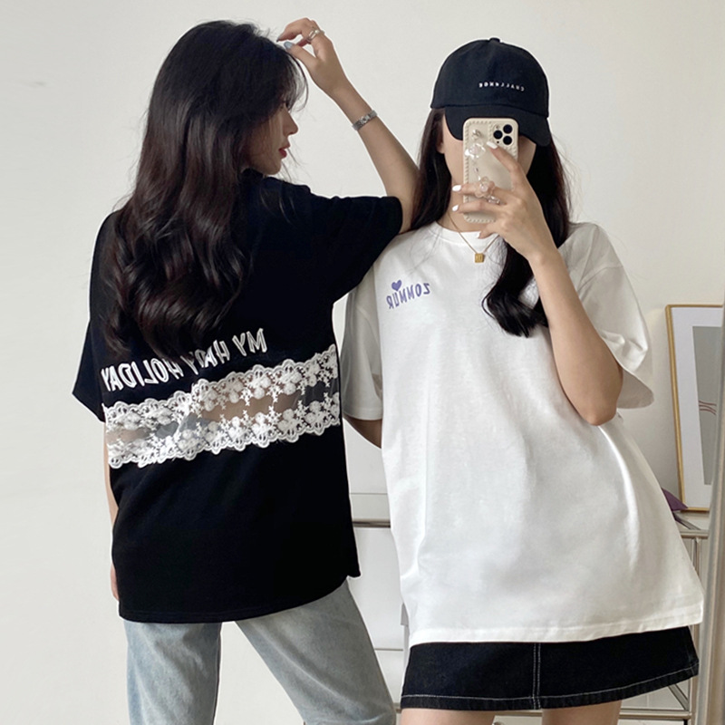 黑色蕾丝拼接短袖T恤女夏季2021新款宽松设计感小众原宿风热门设计联盟服务商