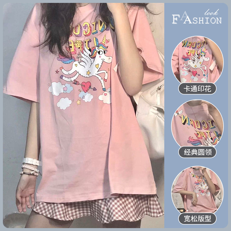 可爱卡通圆领宽松短袖T恤女2021夏季新款韩版学生打底衫上衣女装热门设计联盟服务商