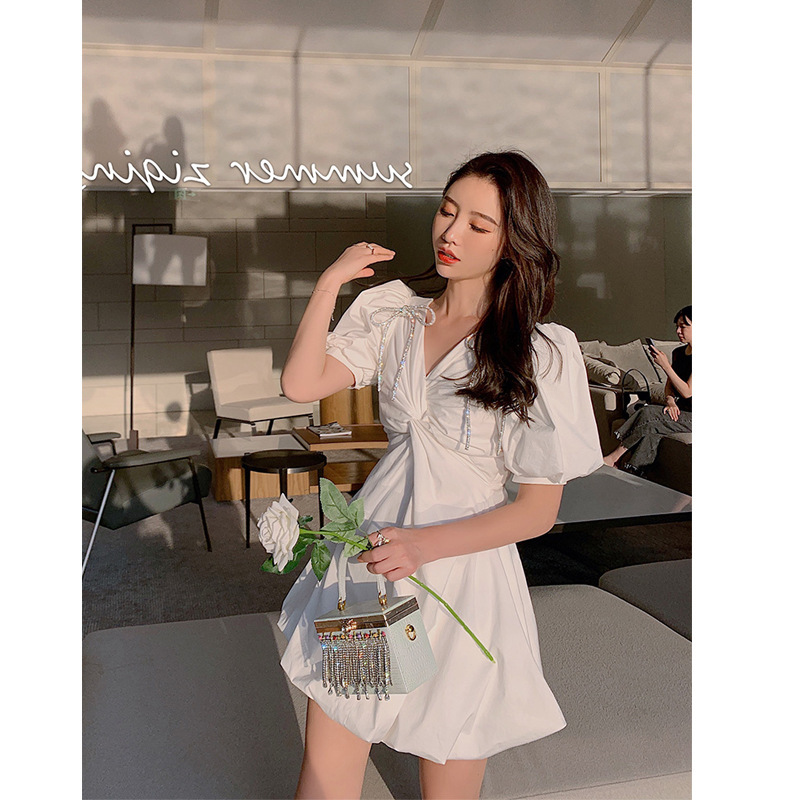 2020夏装新款蝴蝶结泡泡袖设计感白色连衣裙女气质热门设计联盟服务商
