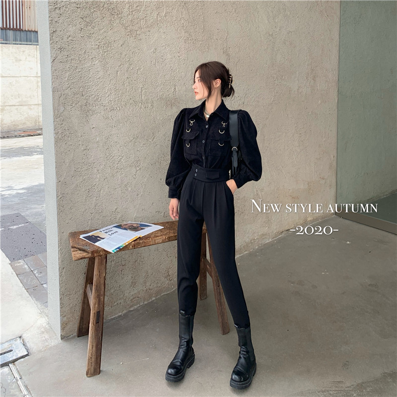 价港风灯笼袖工装衬衣开衫外套高腰小心机西装萝卜裤热门设计联盟服务商