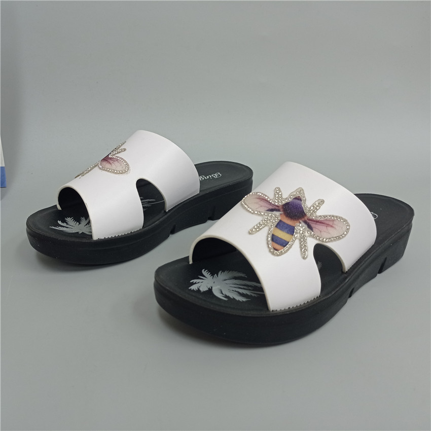 品牌撤柜处理真皮休闲女鞋带图案水钻网红款沙滩女懒人软底拖鞋热门设计联盟服务商